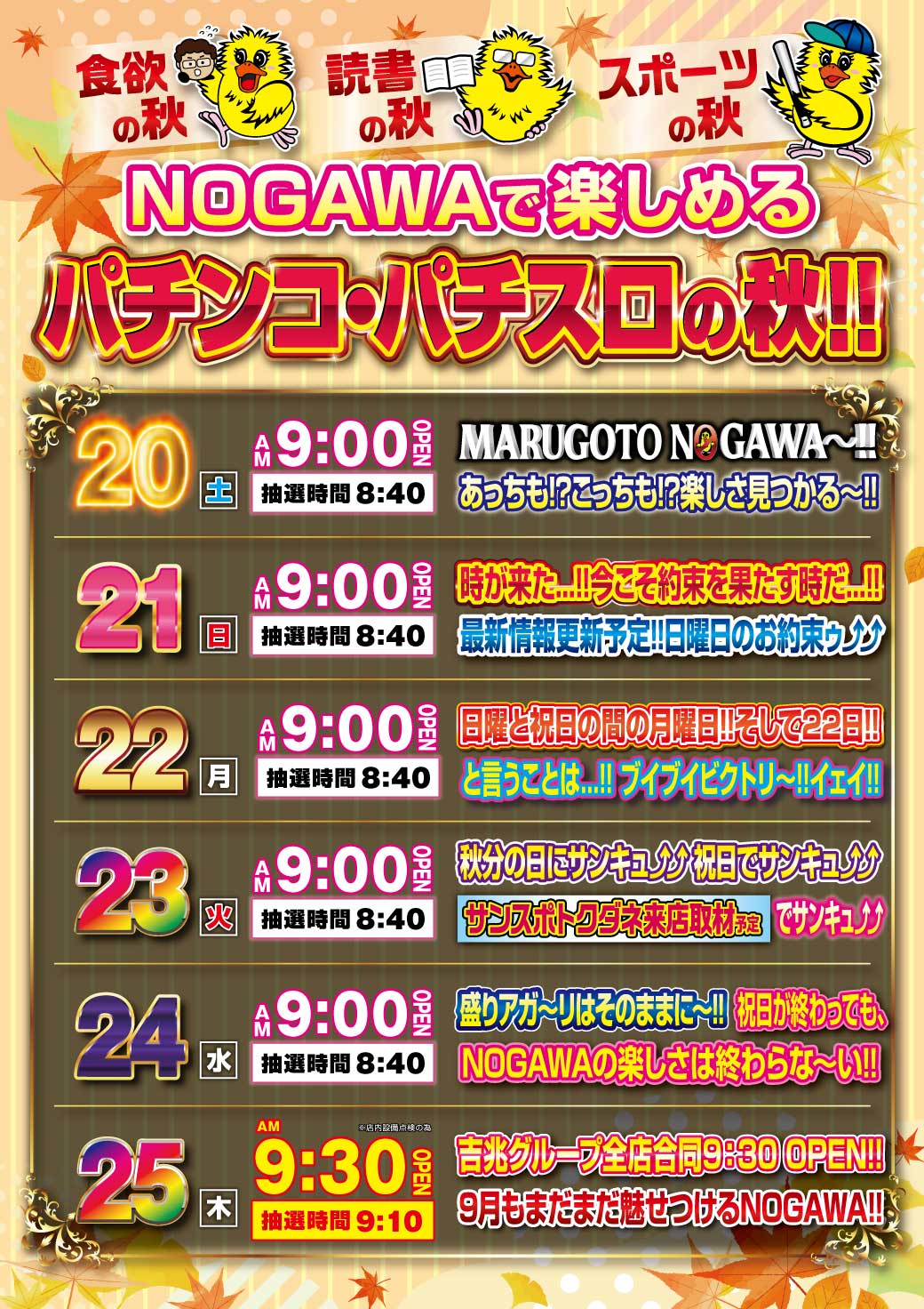 2025/09/25(木) 営業時間 9:30~23:00 ※店内設備点検の為