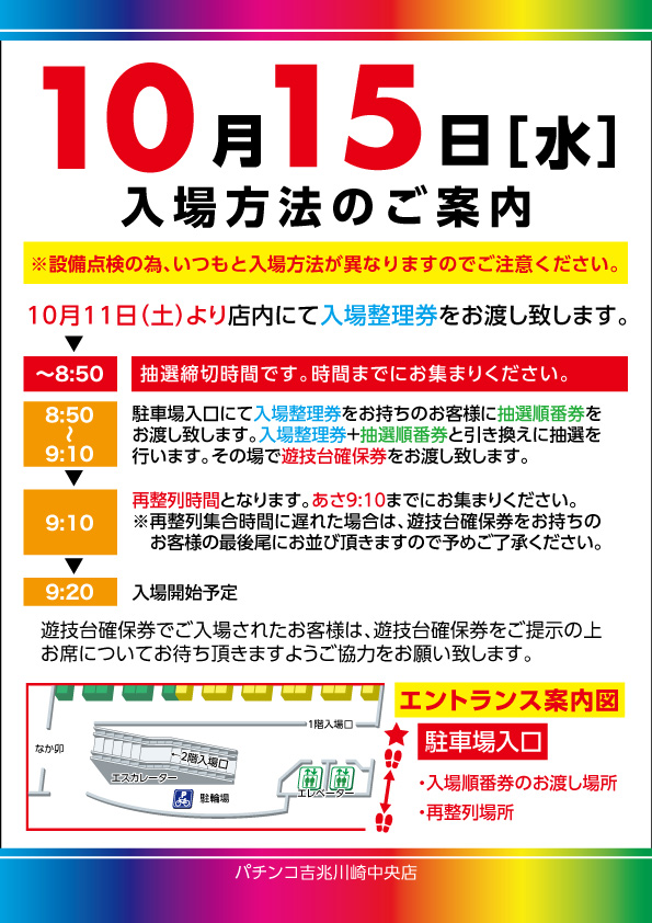 2025/10/15(水) 営業時間 9:30~23:00(遊技終了は22:40です)