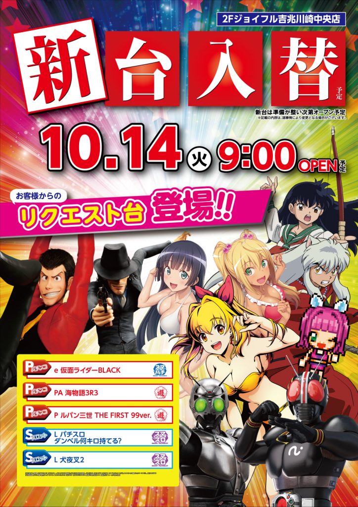 ☆★☆10月登場予定機種☆★☆
