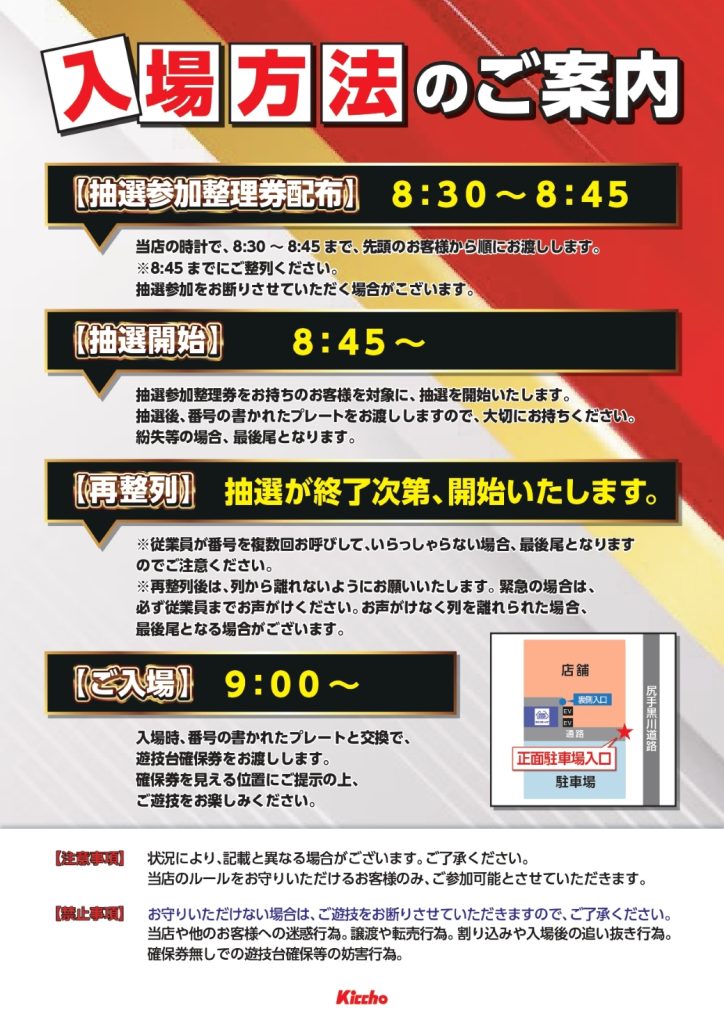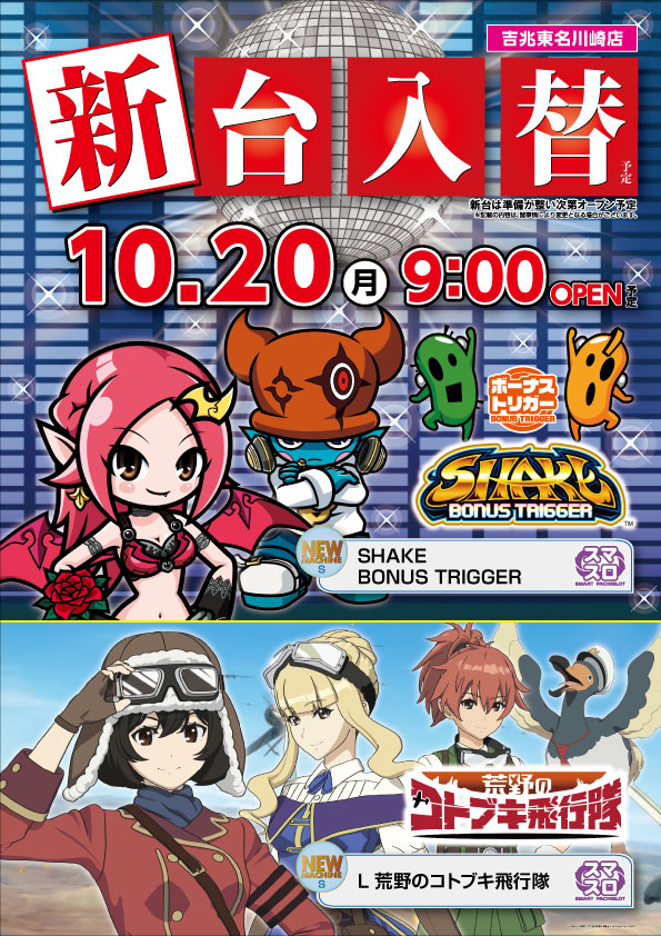 2025/10/20(月) 営業時間 9:00~23:00 (遊技終了は22:40までとなります) ※貯玉される会員様の遊技終了は22:50となります。