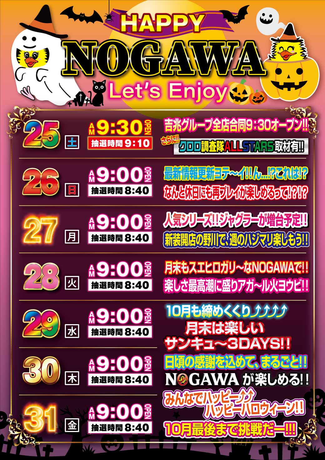 2025/10/26(日) 営業時間 9:00~23:00