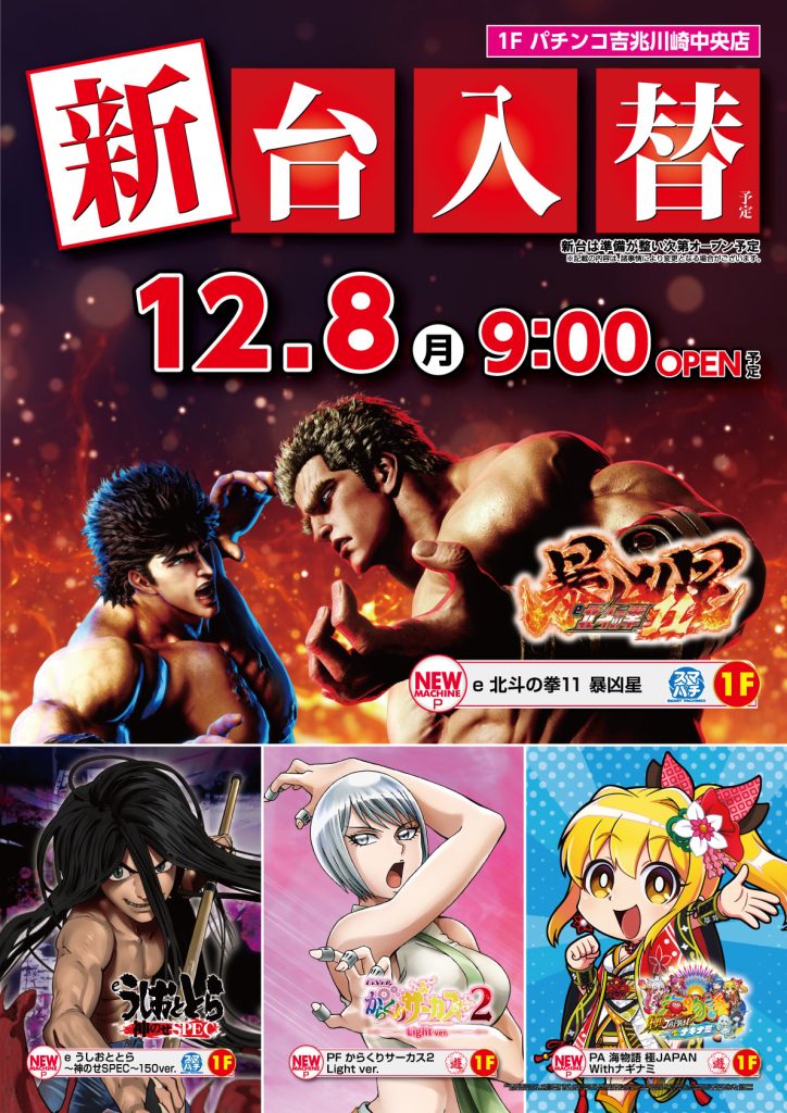 2025/12/04(木) 営業時間 9:00~23:00(遊技終了は22:40です)