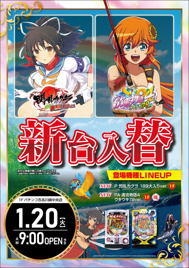 2026/01/20(火) 営業時間 9:00~23:00(遊技終了は22:40です) ※貯玉される会員様の遊技終了は22:50となっております。