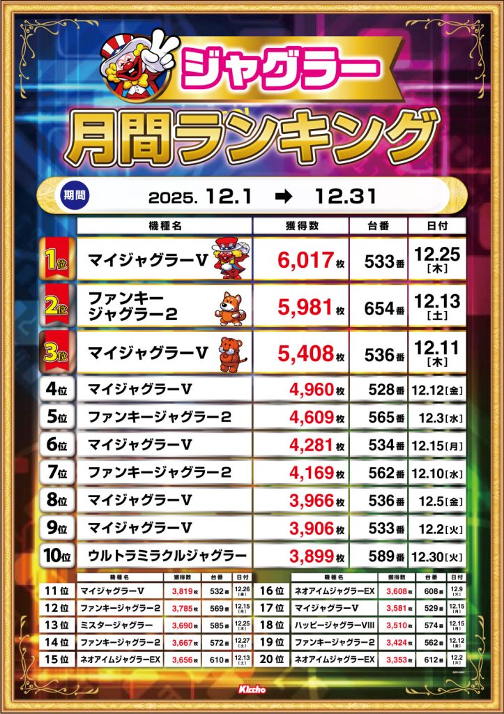お店の出玉ランキングが