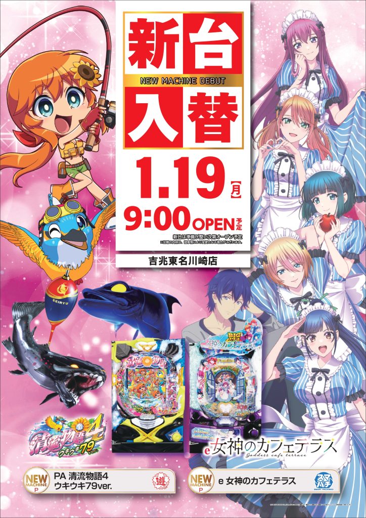 2026/01/21(水) 営業時間 9:00~23:00 (遊技終了は22:40までとなります) ※貯玉される会員様の遊技終了は22:50となります。