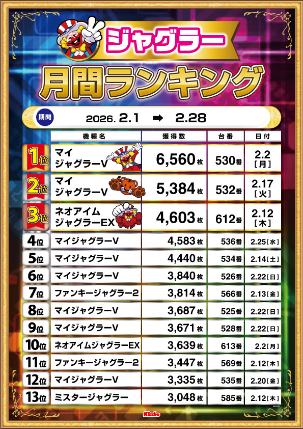 2026/03/07(土) 営業時間 9:00~23:00 (遊技終了は22:40までとなります) ※貯玉される会員様の遊技終了は22:50となります。