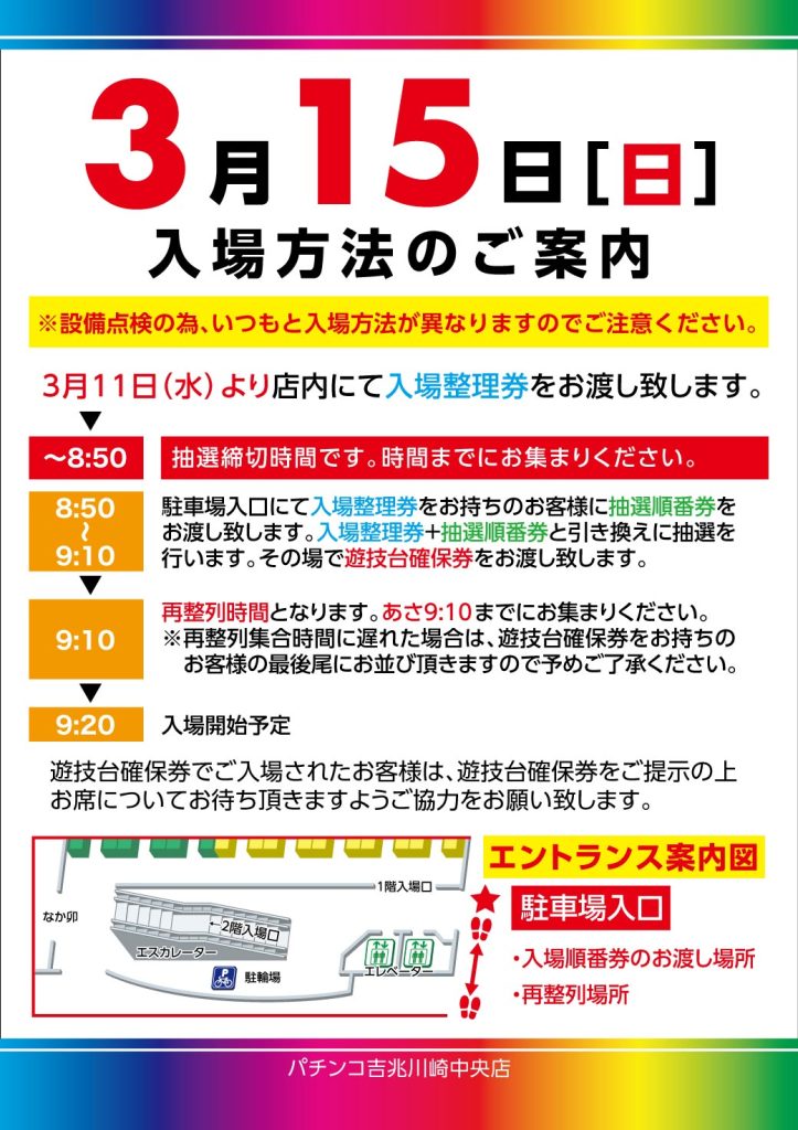 2026/03/14(土) 営業時間 9:00~23:00(遊技終了は22:40です) ※貯玉される会員様の遊技終了は22:50となっております。